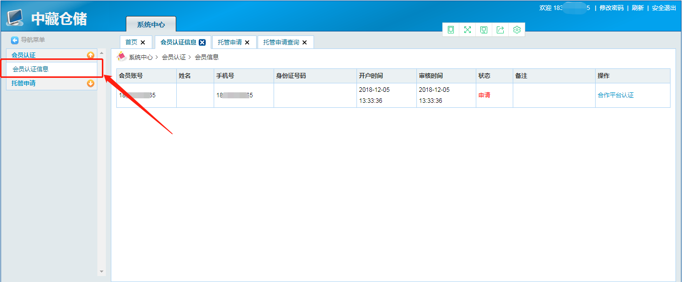 2、點(diǎn)擊“會(huì)員認(rèn)證信息”;