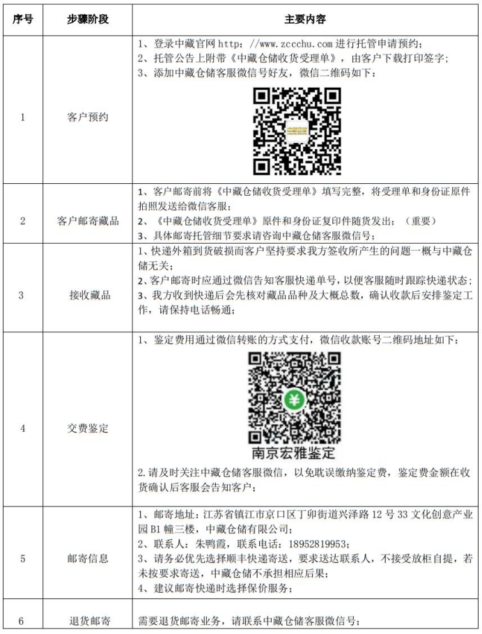 經(jīng)中藏倉(cāng)儲(chǔ)有限公司(以下簡(jiǎn)稱本公司)研究決定,啟動(dòng)下列藏品的托管流程,本公司將對(duì)會(huì)員申請(qǐng)托管入庫(kù)的藏品進(jìn)行統(tǒng)一鑒定,具體事項(xiàng)公告如下:
