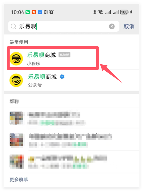 ①微信里搜索“樂易唄商城”小程序,點擊進入;