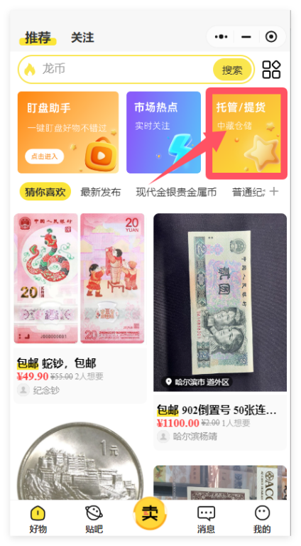 ②首頁點擊“托管/提貨”;