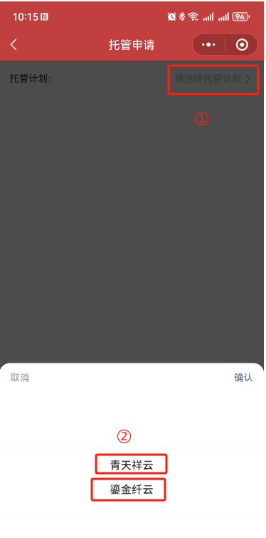 ④點擊“托管計劃”,選擇“青天祥云/鎏金纖云”并確認;